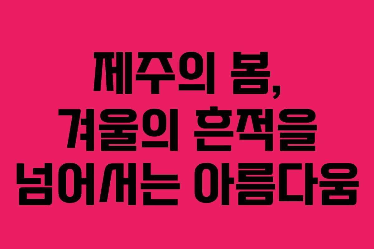 제주를 찾는 이들은 이 특별한 봄의 기운을 느끼며 잊지 못할 여행을 경험하게 될 것이다. 제주의 자연은 언제나 그 자체로 아름다움과 감동을 선사한다.