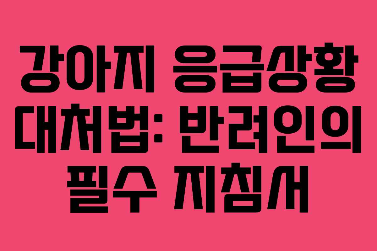 강아지를 기르다 보면 언제 어디서나 발생할 수 있는 다양한 응급상황에 대비하는 것이 중요하다. 이 글에서는 강아지가 겪을 수 있는 여러 응급상황에 대한 대처법을 소개하고, 효과적으로 대처하기 위한 방법을 자세히 설명한다. 반려견의 건강과 안전을 위해 이 정보를 미리 숙지해 두는 것이 좋다.