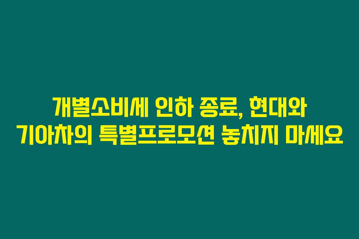제가 직접 알아본 바로는 현대와 기아차가 개별소비세 인하 종료에 맞춰 진행 중인 특별프로모션이 소비자에게 큰 혜택을 제공하고 있습니다. 7월부터 다시 인상된 개별소비세로 인해 부담이 커질 상반기에, 이 특별 프로모션을 통해 합리적인 차량 구매가 가능하니 아래를 읽어보시면 더욱 궁금해질 것입니다.