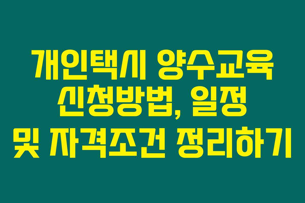 아래를 읽어보시면 개인택시 양수교육의 신청방법, 일정, 자격조건에 대해 쉽게 이해할 수 있을 거예요.