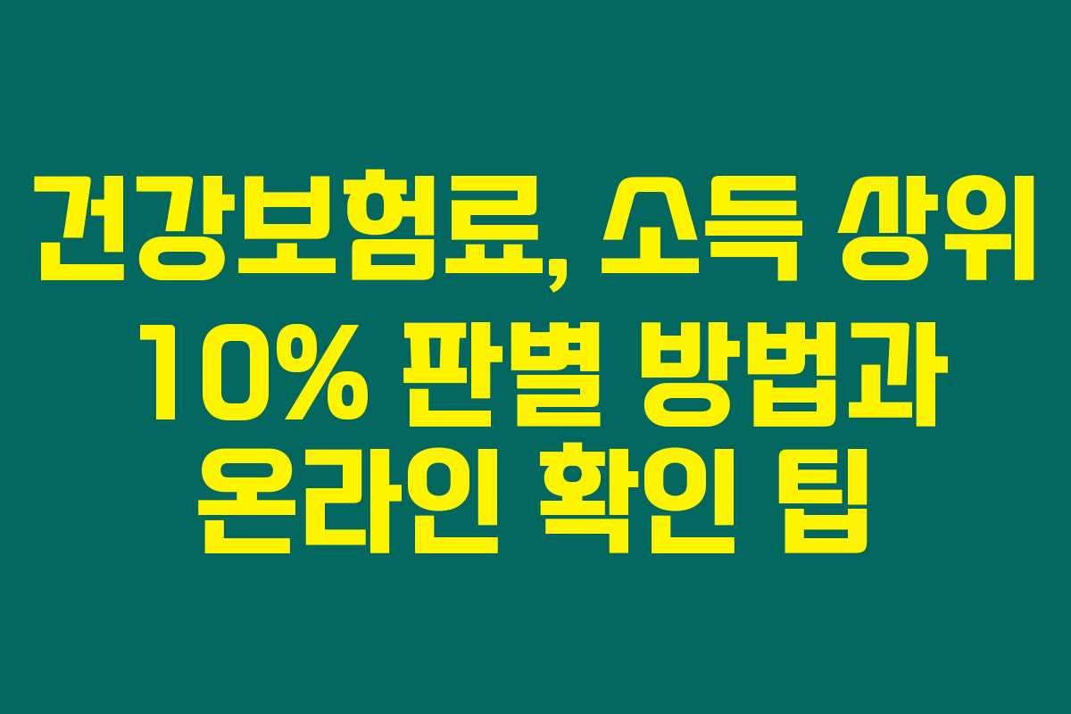 제가 직접 경험해본 결과로는 건강보험료는 개인의 소득에 비례하여 부과되며, 특히 소득 상위 10%에 해당하는 경우에는 추가적인 정보와 주의가 필요합니다. 아래를 읽어보시면 건강보험료 기준 소득 상위 10%를 판별하는 방법과 이를 확인할 수 있는 유용한 사이트에 대한 정보를 자세히 알 수 있습니다.
