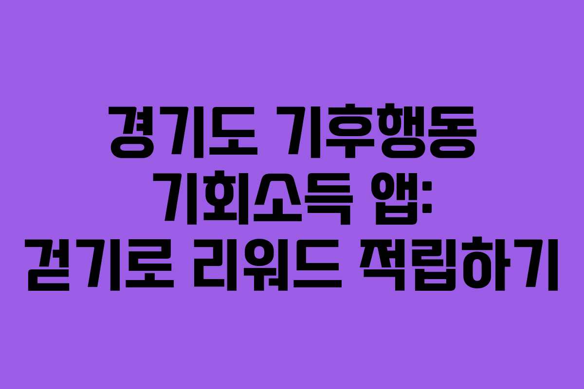 최근 많은 사람들이 앱을 통해 다양한 혜택을 누리고 있습니다. 경기도에서도 탄소중립을 실천하는 도민에게 기회소득을 지급하는 앱이 출시되었습니다. 이번 글에서는 기후행동 기회소득의 운영 방식과 함께, 걷기로 리워드를 적립하는 방법에 대해 상세히 안내하겠습니다.