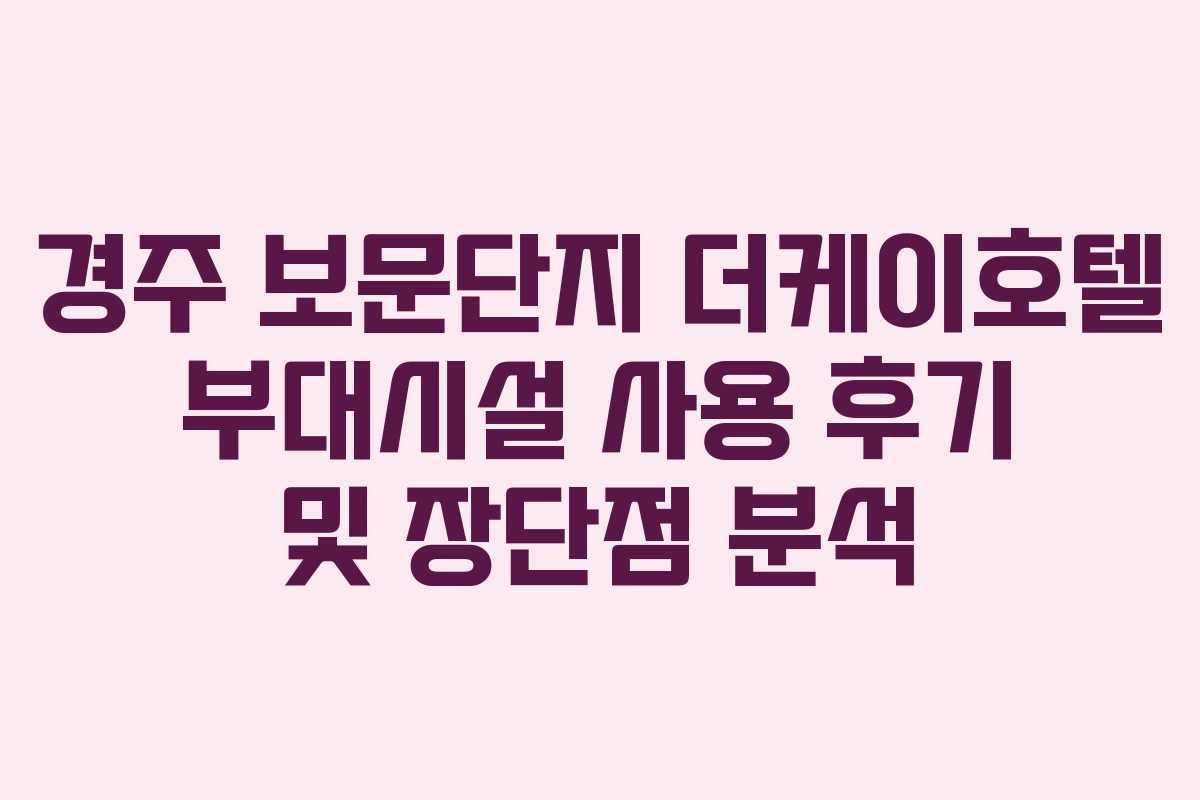 경주 보문단지 더케이호텔 부대시설 사용 후기 및 장단점 분석