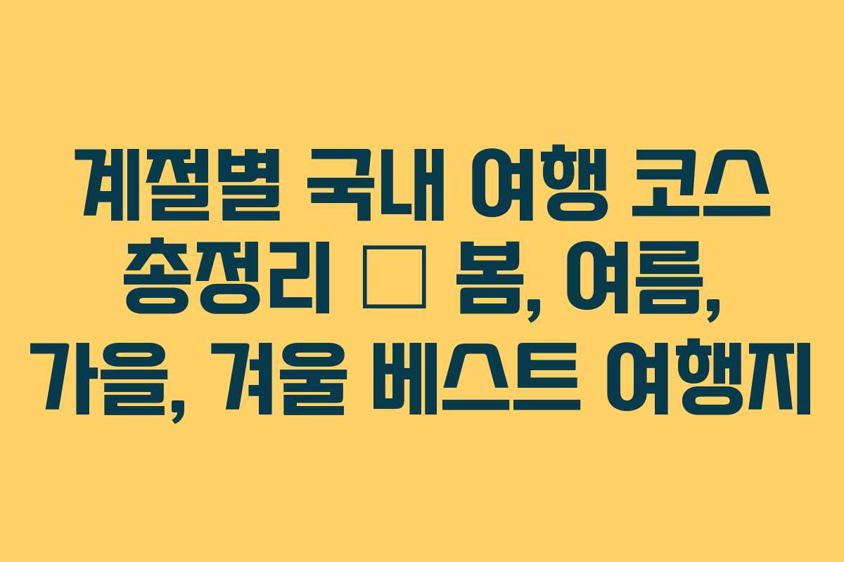 한국은 사계절마다 다양한 매력을 지닌 나라입니다. 각 계절마다 독특한 풍경과 분위기를 느낄 수 있는 국내 여행지를 소개합니다. 2025년의 최신 트렌드를 반영한 추천지로, 여러분의 알찬 여행 계획에 도움이 되길 바랍니다.