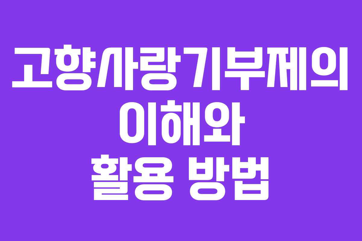 연말이 다가오면서 많은 분들이 연말정산을 준비하고 있습니다. 이 시기에 특히 주목받는 제도가 바로 고향사랑기부제입니다. 본 글에서는 이 제도가 무엇인지, 그리고 어떤 혜택이 있는지 자세히 알아보겠습니다.