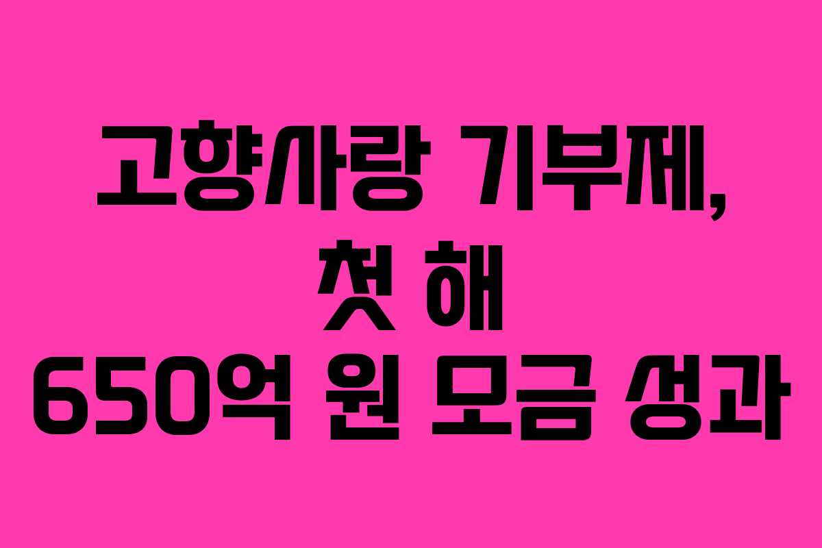 고향사랑 기부제가 시행된 첫 해에 약 650억 원의 기부액을 모금하며 성공적으로 안착하였습니다. 2023년 말 기준으로 총 52만 5천 건의 기부가 이루어졌으며, 지방재정 확충과 지역경제 활성화에 큰 기여를 한 것으로 평가받고 있습니다.