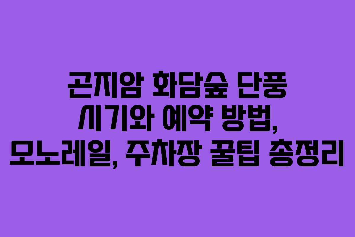 가을이 오면 많은 이들이 단풍을 즐기기 위해 떠나는 여행지 중 하나가 바로 곤지암 화담숲입니다. 이곳은 매년 가을, 아름다운 단풍으로 많은 방문객을 맞이합니다. 이번 포스팅에서는 화담숲에서의 단풍 시기, 예약 방법, 모노레일 정보, 주차장 이용 팁 등을 자세히 소개하겠습니다.