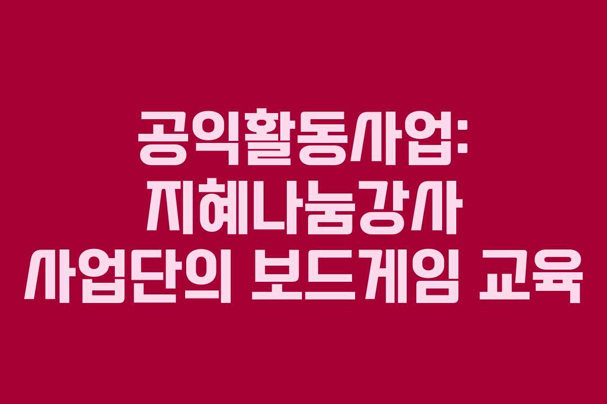 구리실버인력뱅크의 공익활동사업 중 하나인 지혜나눔강사 사업단에서는 2025년 11월에 보드게임 교육을 실시합니다. 이번 교육은 참여자들에게 즐거운 경험을 제공하고, 노인 일자리 사업에 대한 관심을 높이기 위한 프로그램입니다.