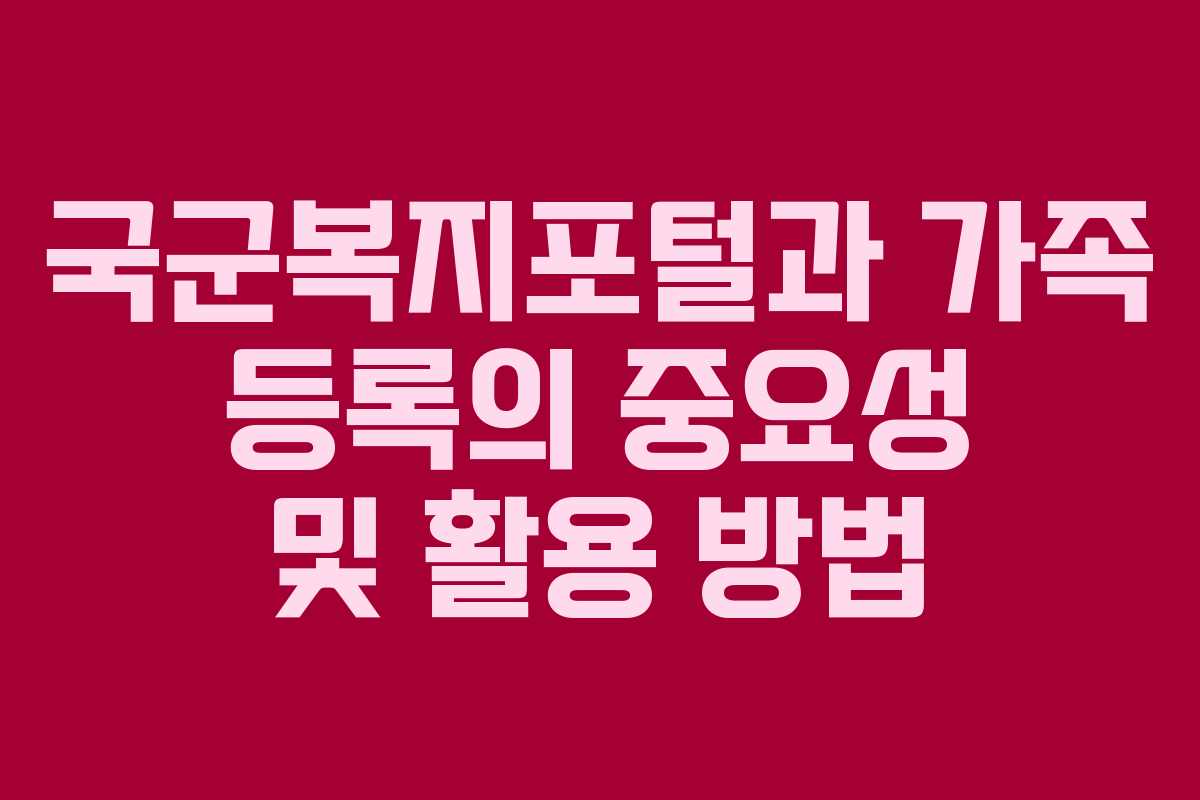 군인의 가족으로 등록하는 것은 여러 가지 혜택을 누릴 수 있는 중요한 과정입니다. 가족 등록을 통해 군인의 배우자, 자녀, 부모, 조부모 등이 공식적으로 등록되어 다양한 복지 서비스를 이용할 수 있습니다. 이는 군인 가족들이 보다 나은 생활 여건을 누릴 수 있도록 지원합니다.