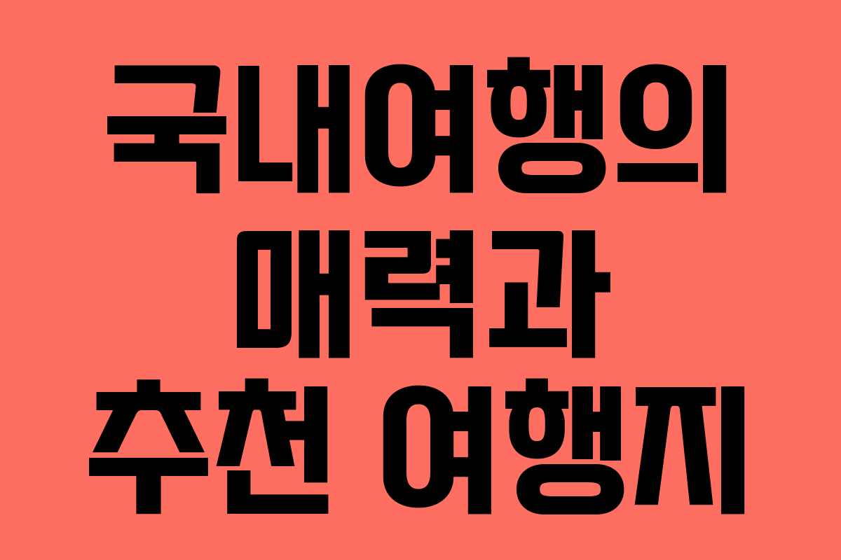 국내여행은 다양한 볼거리와 즐길거리를 제공하여 많은 사람들에게 사랑받고 있습니다. 한국의 아름다움과 문화유산을 느낄 수 있는 여행지를 소개합니다.