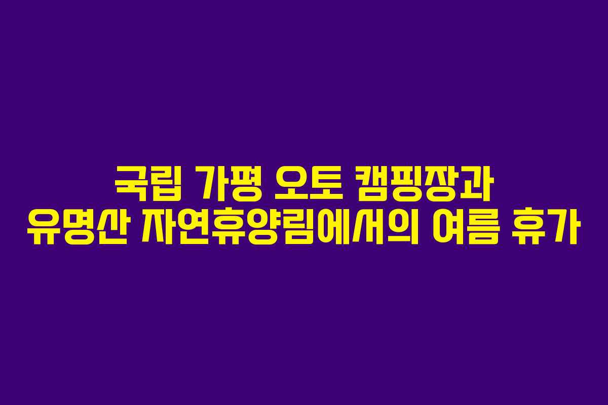여름이 다가오면서 시원한 계곡과 자연 속에서 즐길 수 있는 캠핑을 고민하는 분들이 많습니다. 이번 글에서는 국립 가평 오토 캠핑장과 유명산 자연휴양림을 소개합니다. 이곳은 저렴한 비용으로 자연을 만끽할 수 있는 최적의 장소입니다.
