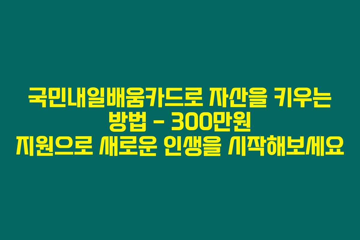 국민내일배움카드는 인생의 새로운 시작을 위한 좋은 기회가 될 것입니다. 필요한 정보를 미리 확인하고, 본인이 원하는 방향으로 효율적으로 활용해보세요.