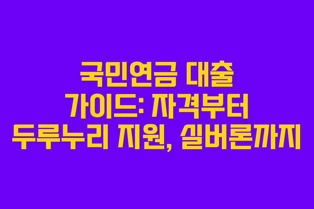 국민연금 대출 가이드: 자격부터 두루누리 지원, 실버론까지