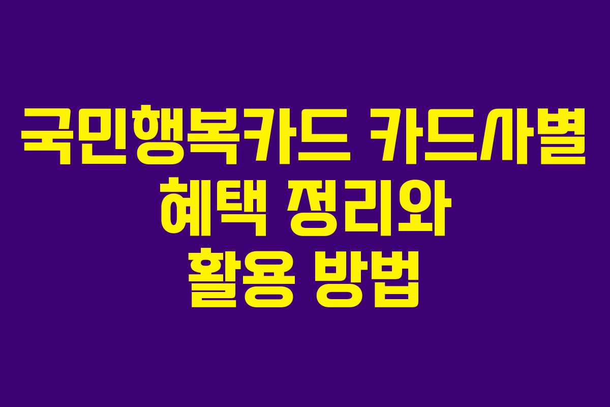 국민행복카드는 다양한 정부 지원 혜택을 한곳에서 누릴 수 있는 유용한 도구입니다. 각 카드사별 고유 혜택을 잘 비교하고, 본인에게 맞는 카드를 선택하여 경제적 부담을 덜어보세요.