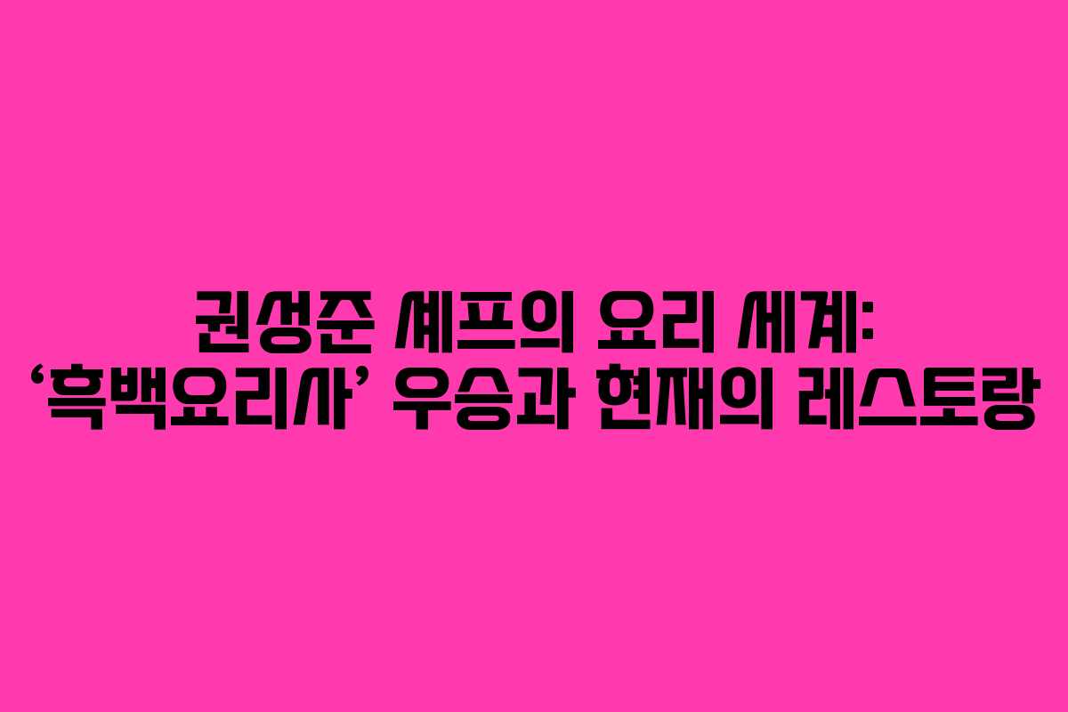 권성준 셰프는 넷플릭스의 요리 서바이벌 프로그램 ‘흑백요리사’에서 독창적인 요리로 최종 우승을 차지하며 주목받는 인물입니다. 전통 한국 요리와 현대적인 감각을 조화롭게 결합하여 다채로운 요리를 선보인 그는 시청자와 심사위원의 마음을 사로잡았습니다.