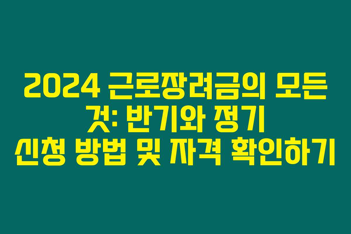 제가 직접 알아본 바로는 2024년의 근로장려금 반기 및 정기 신청 방법과 자격 조건에 대해 많은 분들이 헷갈려 하시다는 것을 알게 되었어요. 근로장려금은 저소득 근로자와 사업자들을 위한 매우 중요한 제도이지만, 신청 과정에서의 오류나 모르면 놓치는 기회가 많죠. 아래를 읽어보시면 정확한 신청 자격과 방법에 대해 알아보실 수 있을 거예요.
