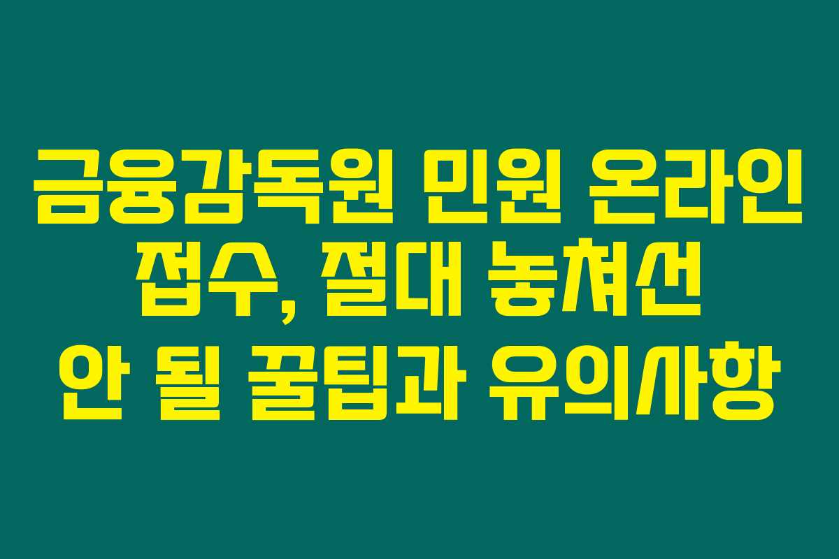 金融 거래 중 불편을 겪었다면 금융감독원에 민원을 제기하는 것이 좋은 방법이라는 것 알고 계셨나요? 하지만 민원 접수 과정에서 여러 가지 복잡한 문제에 부딪힐 수 있어요. 혹시 금융감독원 민원 온라인 접수 방법과 주의 사항을 잘 알고 계시나요? 아래를 읽어보시면, 민원 접수가 훨씬 수월해질 거예요!