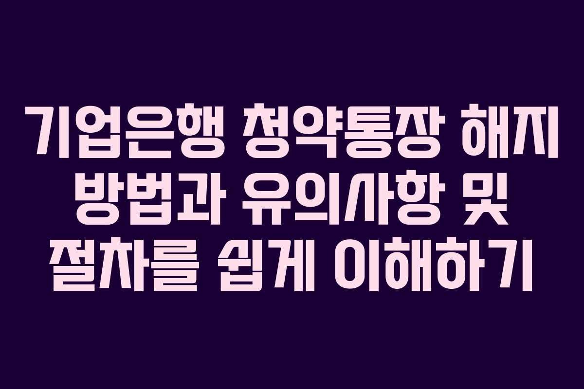 기업은행 청약통장 해지 방법과 유의사항 및 절차를 쉽게 이해하기