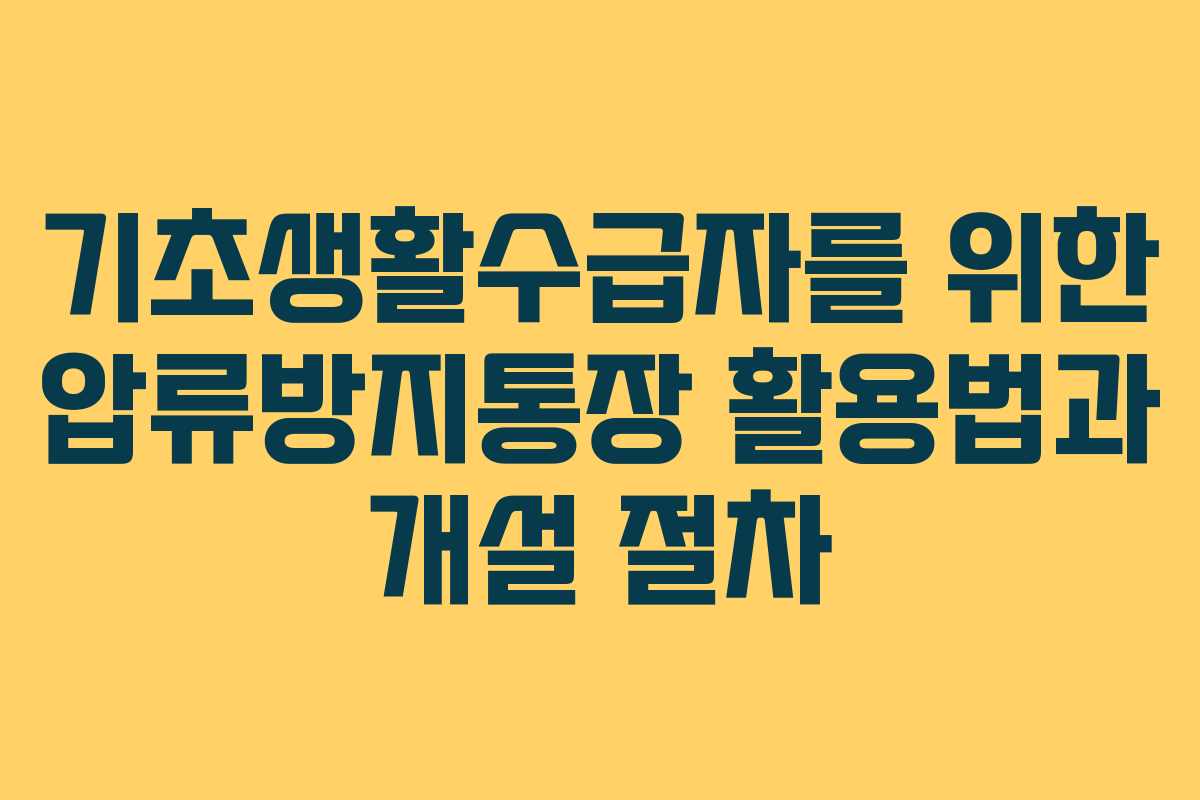 압류방지통장은 기초생활수급자의 급여가 압류되는 것을 방지하기 위해 설계된 특별한 금융 상품이다. 이 통장에 기초생활수급자의 급여만 입금 가능하며, 다른 금액의 입금은 차단된다. 이러한 구조는 수급자의 생활을 보호하고 안정적인 생활 기반을 마련하는데 기여한다. 압류방지통장은 1인 1계좌 원칙의 예외로 운영되므로, 수급자가 자신의 통장에 별도의 금액을 추가로 입금할 수 없다는 점을 유의해야 한다.