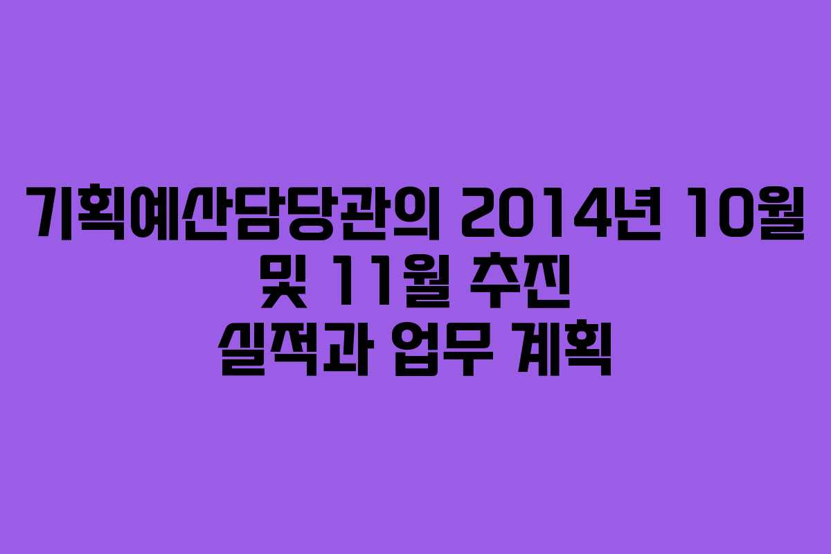 기획예산담당관은 2014년 10월과 11월 동안 다양한 실적과 업무 계획을 수립하였습니다. 이번 글에서는 주요 추진 실적과 향후 계획을 상세히 살펴보도록 하겠습니다.