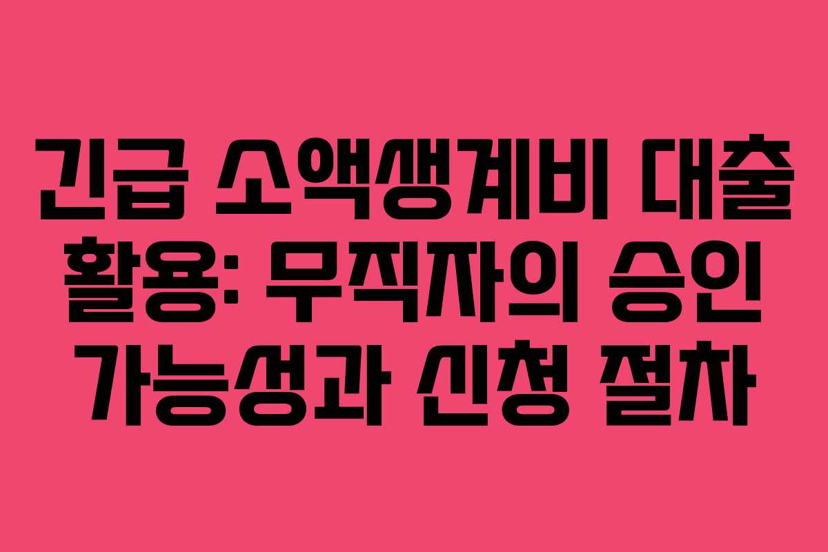갑작스럽게 경제적인 어려움에 처한 분들에게 긴급 소액생계비 대출은 큰 도움이 될 수 있습니다. 특히, 무직자라는 이유로 대출이 거절되는 경우가 많지만, 이 대출은 다른 대출과는 다른 유연한 기준을 적용합니다. 본문에서는 긴급 소액생계비 대출의 개요와 무직자의 승인 가능 사유 및 신청 절차를 자세히 살펴보도록 하겠습니다.
