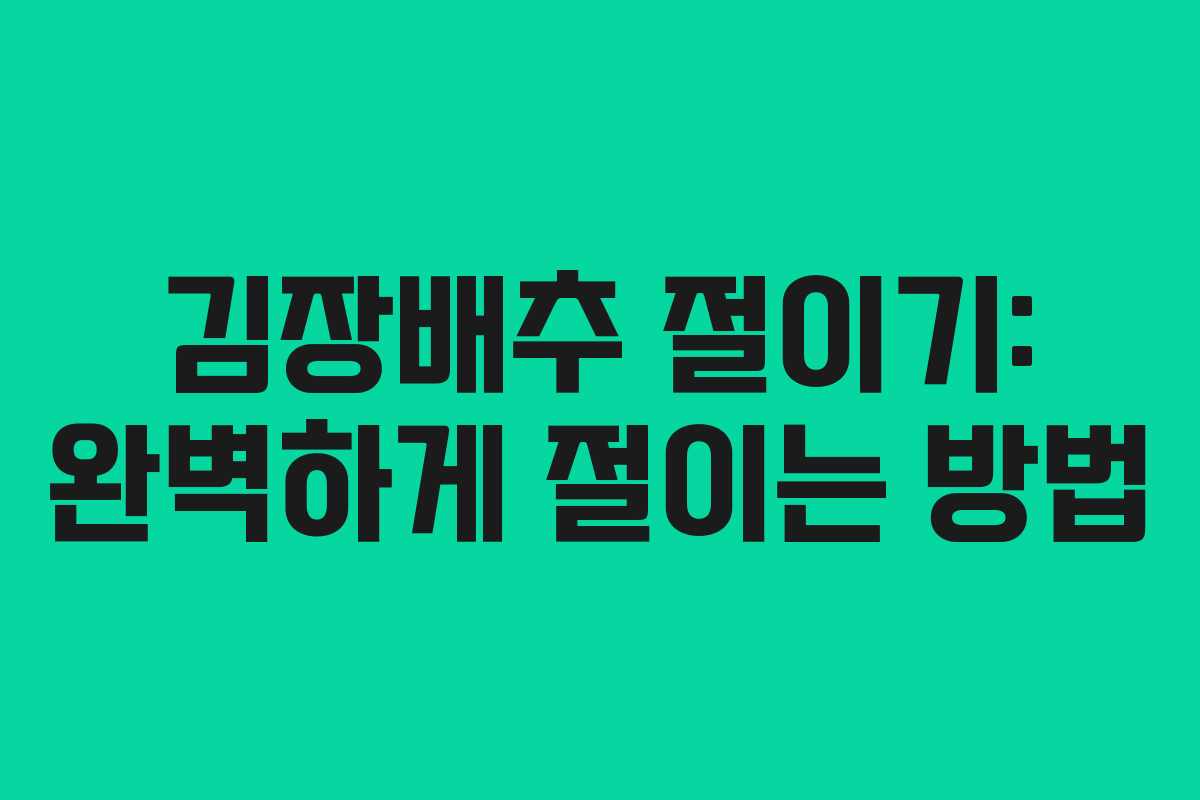 김장배추를 절이는 과정은 김장 준비의 첫 단계로, 제대로 절여야만 맛있고 아삭한 김장김치를 만들 수 있습니다. 이 글에서는 김장배추 절이기의 기본적인 방법과 소금물 만들기, 절이는 시간 조절 등을 안내합니다.