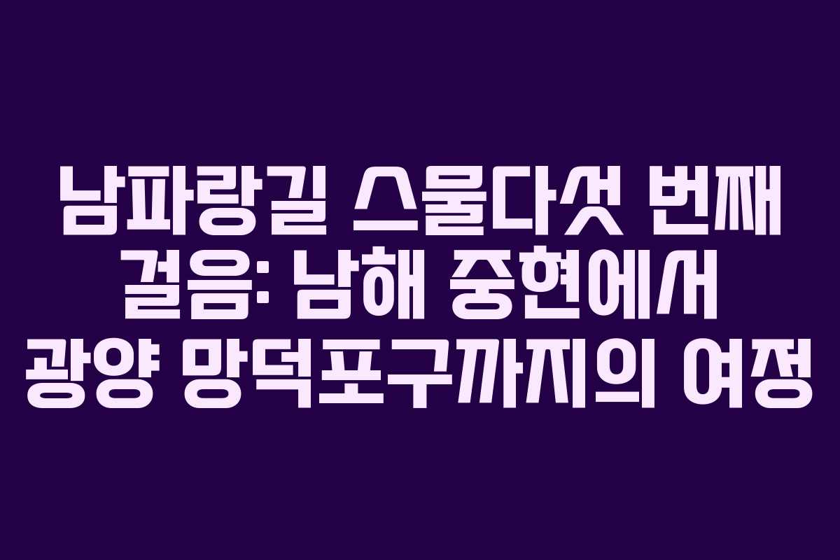 2026년 상반기 여행 계획을 세우고 있는 이들에게 남파랑길의 매력은 다가올 여행의 기대감을 불러일으킵니다. 이번 포스트는 2022년 5월 28일부터 31일까지의 여정을 바탕으로, 남해 중현에서 광양 망덕포구까지의 길을 걷는 과정에서 느낀 점과 경험을 공유하고자 합니다.