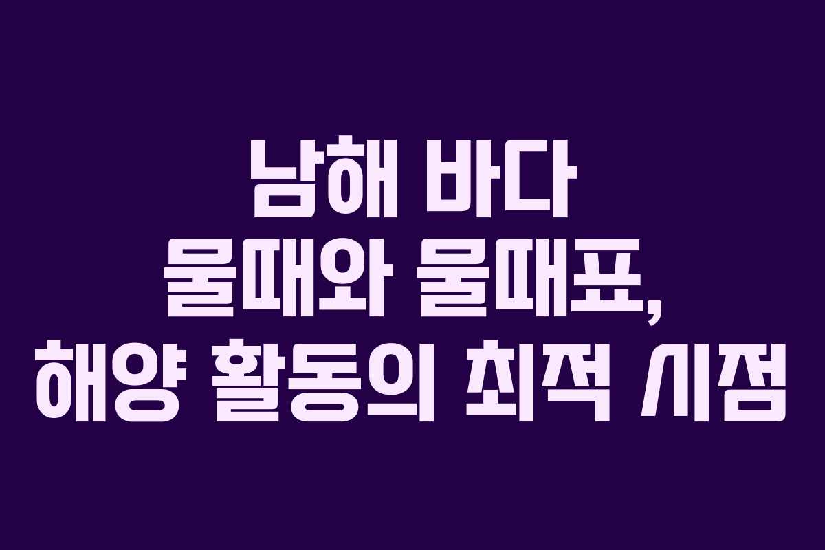 남해를 방문할 때 물때와 물때표를 확인하는 것은 바닷가에서의 활동을 성공적으로 즐기는 데 필수적이다. 물때는 바닷물의 높이가 주기적으로 변하는 현상으로, 물때표는 이를 시간대별로 정리한 것이다. 이 글에서는 남해와 남해 바다의 물때 및 물때표에 대해 자세히 살펴보겠다.
