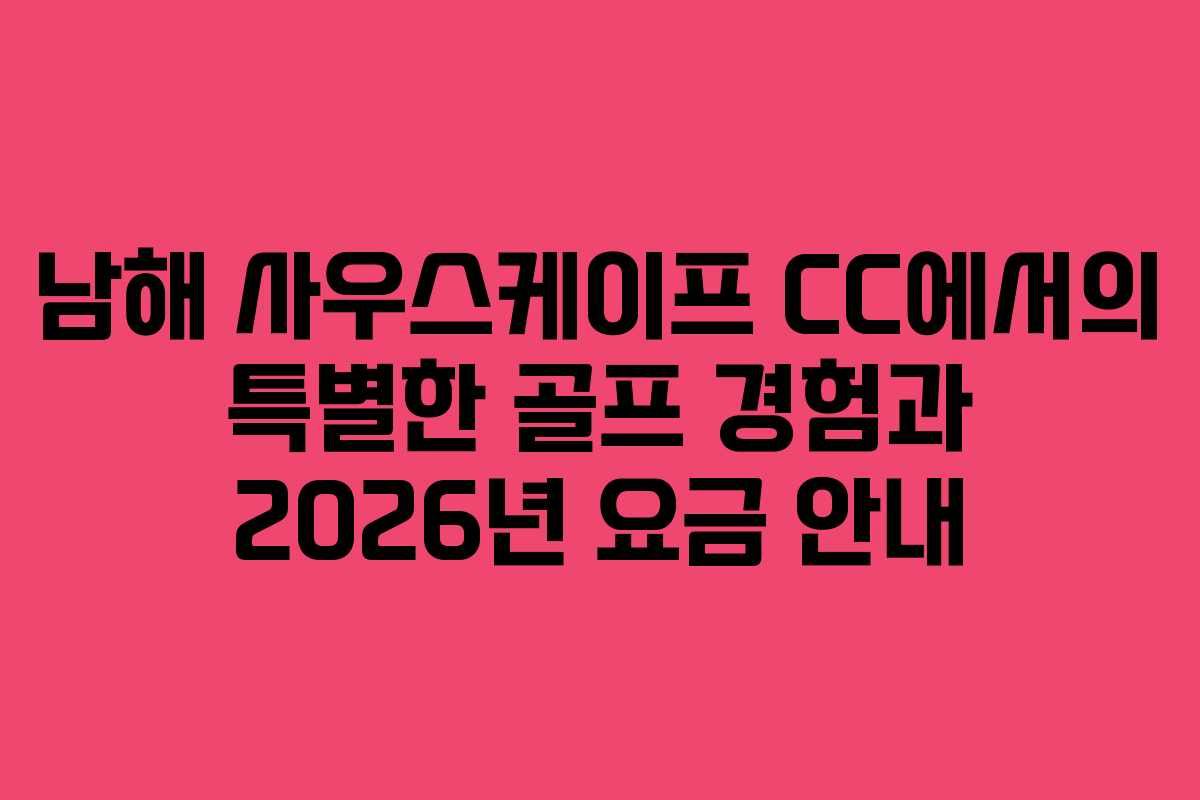 남해 사우스케이프 CC에서의 특별한 골프 경험과 2026년 요금 안내