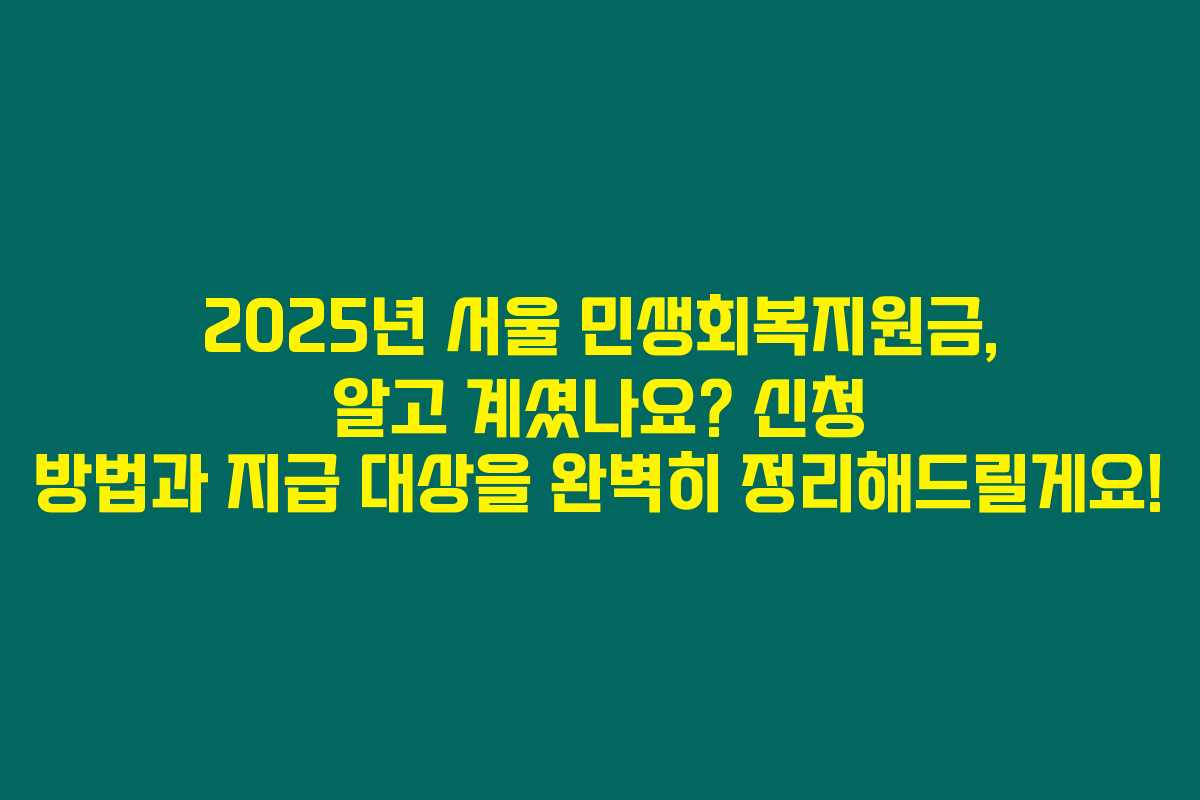 2025년 서울 민생회복지원금을 신청할 예정이신가요? 경제적 어려움을 겪고 계시다면 아래 내용을 꼭 확인해보셔야 합니다. 서울시는 저소득층과 소상공인 등 취약 계층을 대상으로 지원금을 지급한다고 해요. 그 지급 방법과 대상을 제대로 알아두시면 좋겠죠. 그러니 계속 읽어보세요!