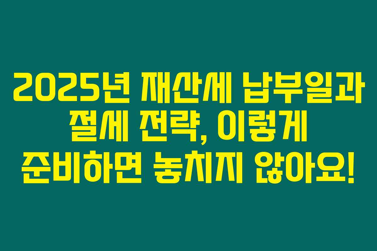 2025년 재산세 납부일과 절세 전략을 고민하고 계신가요? 재산세는 매년 반복되는 일이지만 준비가 늦어지면 불이익이 따를 수 있어요. 특히 2025년은 납부 방식이 다양해져 더욱 주의가 필요하지요. 그러니 계속 읽어보시면 유용한 절세 팁과 정확한 납부일정, 실수하는 포인트를 미리 알 수 있어요!