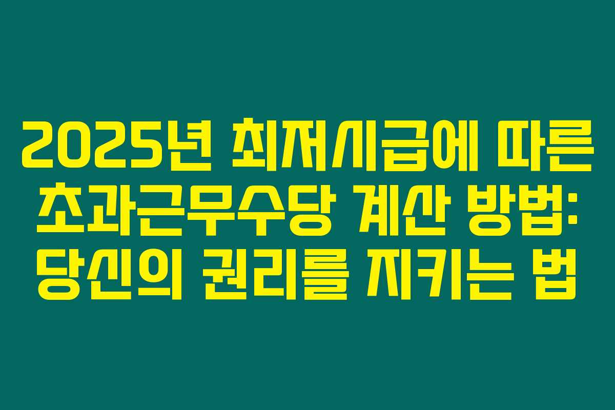 제가 직접 확인해 본 결과, 2025년 최저시급 기준에 적합한 초과근무수당 계산 방법에 대해 상세히 알려드립니다. 초과근무수당을 올바르게 이해하고 계산하는 것은 근로자들이 자신들의 권리를 보호하는 데 필수적입니다. 아래를 읽어보시면 초과근무수당의 개념과 계산법을 이해하는 데 도움이 될 것입니다.