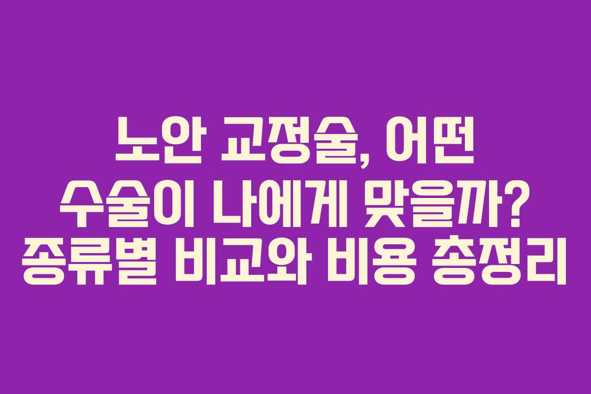 노안 교정술은 노화로 인한 시력 저하를 개선하여 안경 없이도 편안한 생활을 가능하게 하는 효과적인 수술입니다. 그러나 비교적 높은 비용과 수술 후 관리, 부작용 가능성을 고려해야 하며, 자신의 눈 상태에 맞는 최적의 수술 방법을 선택하는 것이 중요합니다. 수술 전 전문의와의 상담을 통해 본인의 상태에 맞는 교정술을 선택하고 비용 및 기대 효과를 충분히 이해한 후 결정하는 것이 바람직합니다.