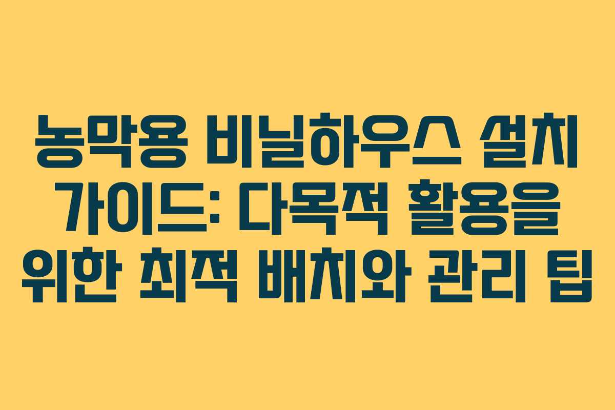 아래를 읽어보시면 농막용 비닐하우스의 적합한 위치 선정 원칙, 재료 선택 요령, 시공 흐름, 유지 관리 포인트를 한눈에 파악하고, 비용 절감과 효율적 활용 아이디어를 얻을 수 있습니다.