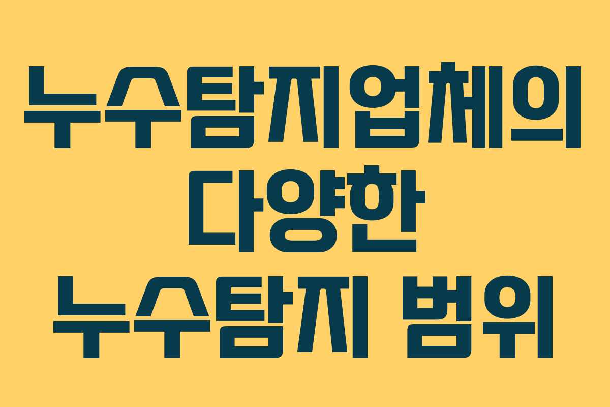 누수탐지업체는 다양한 현장에서 누수를 탐지하고 보수하는 역할을 수행합니다. 이 글에서는 누수탐지업체가 다룰 수 있는 여러 탐지 범위에 대해 살펴보겠습니다.