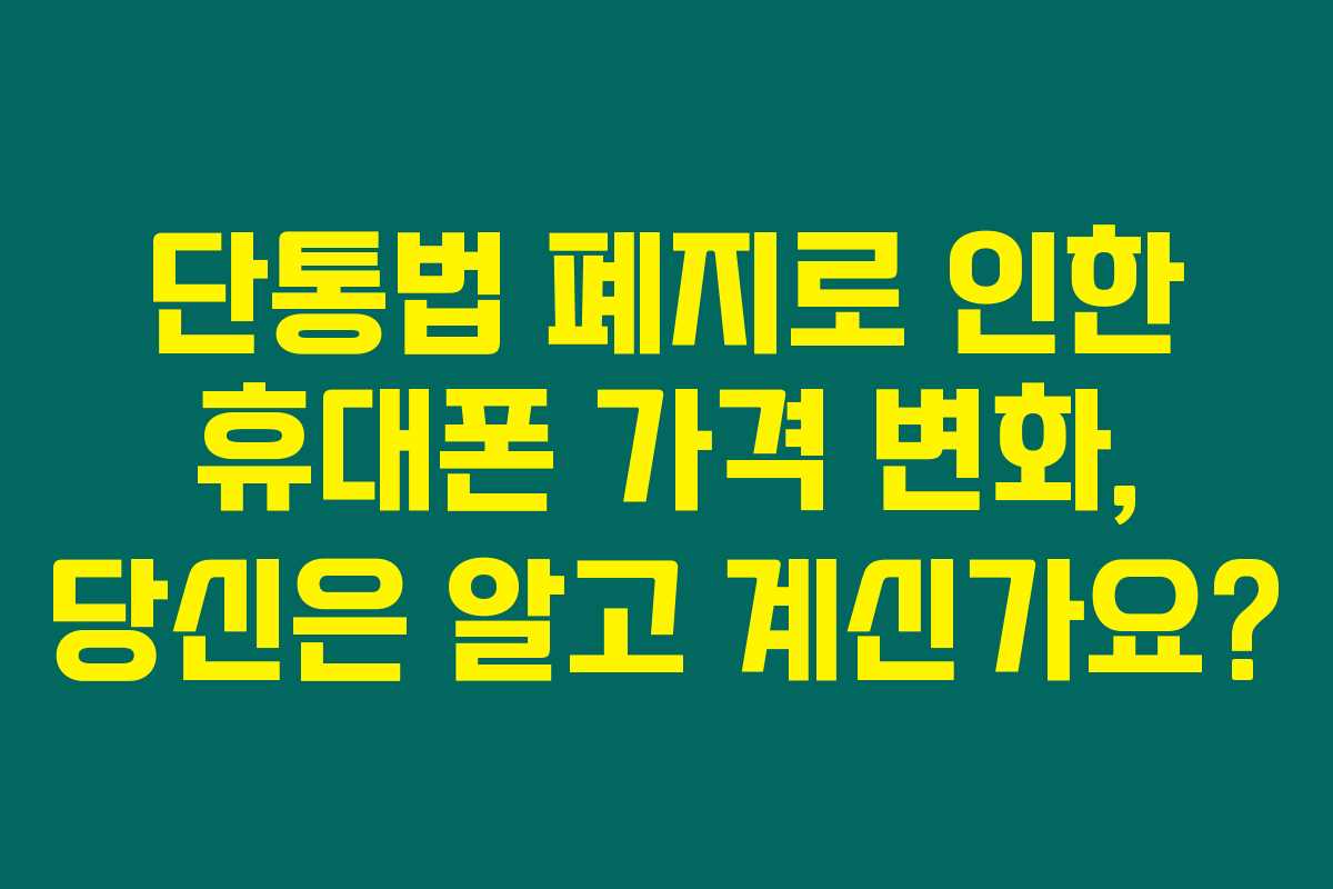 제가 직접 체크해본 바로는, 2025년 6월 27일에 단통법이 폐지됨에 따라 휴대폰 가격이 어떻게 변할지 많은 소비자들이 궁금해하고 있습니다. 단통법은 10년간 휴대폰 가격에 영향을 미쳐왔는데, 이제 이 법이 사라지면서 우리는 더 합리적인 가격으로 휴대폰을 구매할 수 있을지 기대가 됩니다. 아래를 읽어보시면 단통법 폐지에 따른 제반 사항과 소비자가 알아야 할 내용들을 자세히 알려드리겠습니다.