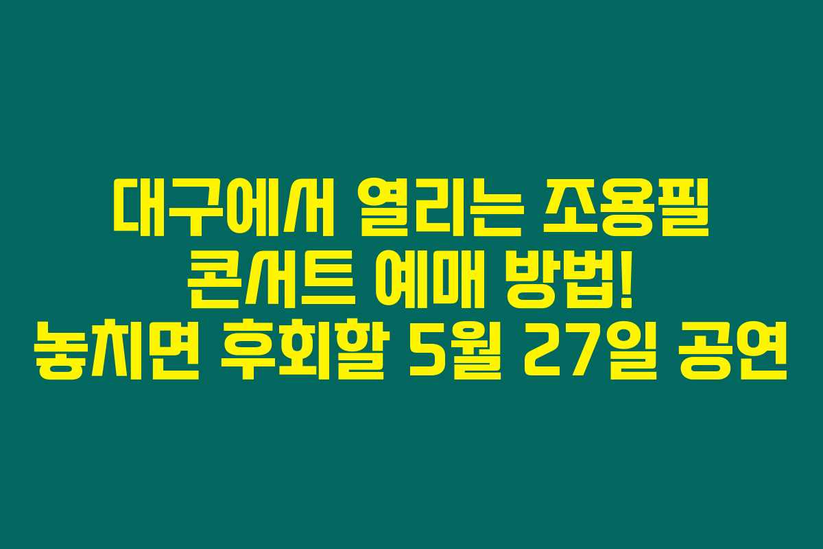 조용필의 대구 콘서트는 대한민국 대중가요의 한 획을 그은 공연이니 만큼 반드시 참여해보세요. 특별한 경험을 잊지 못할 거예요!
