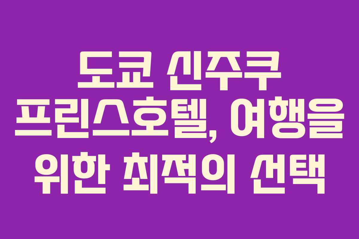 도쿄 여행을 계획하면서 가장 먼저 고려해야 할 요소 중 하나는 숙소의 위치이다. 특히 신주쿠는 도쿄의 중심지로 다양한 교통 수단과 관광지를 접할 수 있어 많은 여행자들이 선호하는 지역이다. 이번 포스팅에서는 신주쿠에 위치한 프린스호텔의 장점과 객실 후기, 여행 중 유용한 정보들을 소개하고자 한다.