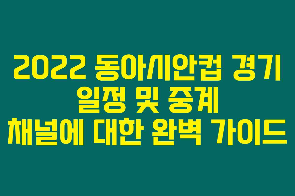 제가 직접 알아본 바로는 2022 EAFF E-1 풋볼 챔피언십, 일반적으로는 동아시안컵이라고 알려진 이 대회는 한국, 일본, 중국이 참여하는 중요한 축구 대회로, 각 팀의 경쟁력을 확인하기 좋은 기회입니다. 아래를 읽어보시면 동아시안컵의 경기 일정과 중계 채널에 대한 상세정보를 확인하고, 대표팀 명단도 살펴보실 수 있습니다.