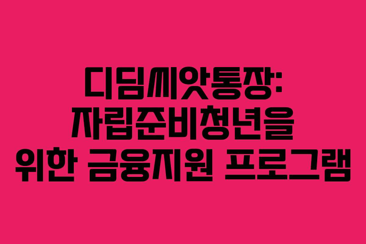 디딤씨앗통장은 취약계층 아동에게 자립 초기 비용을 지원하는 정부 운영의 아동자산형성지원사업입니다. 이 프로그램을 통해 저소득층 아동들이 학자금, 취업 준비금, 주거 마련 등 사회 진출에 필요한 자금을 마련할 수 있도록 돕고 있습니다.