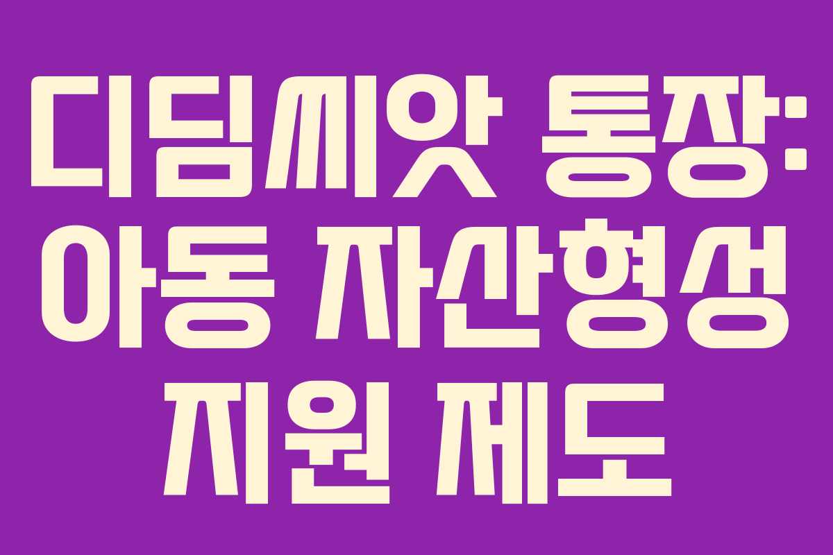 디딤씨앗 통장은 아동의 자산 형성을 지원하는 유일한 사업으로, 경제적 어려움을 겪는 아동에게 큰 도움이 됩니다. 이 통장을 통해 아동은 자립을 위한 재정을 마련할 수 있으며, 정부의 지원을 통해 더 나은 미래를 설계할 수 있습니다.
