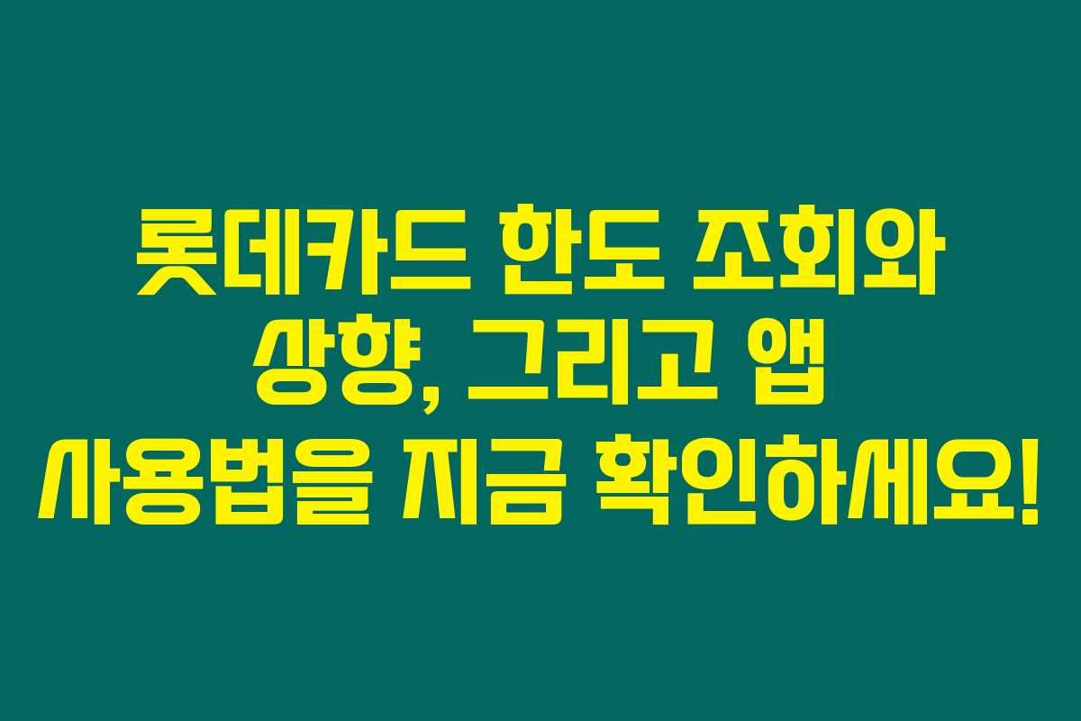 카드 한도는 우리의 소비 생활에서 중요한 요소인데요. 매번 확인하기 귀찮으셨다면 이제는 롯데카드 앱을 통해 간편하게 한도를 조회하고 조정할 수 있답니다. 아래를 읽어보시면 롯데카드의 한도 조회 및 상향 방법에 대한 모든 정보를 쉽게 이해하실 수 있을 거예요!