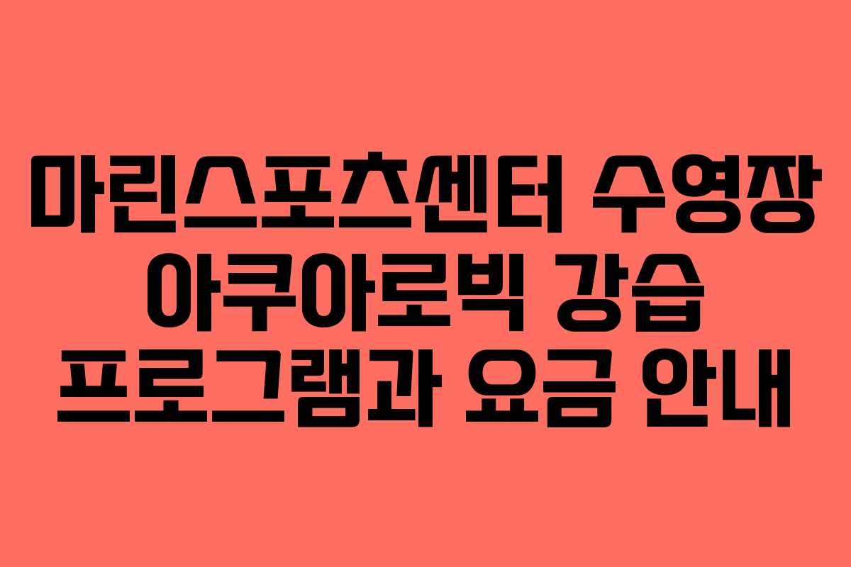 마린스포츠센터 수영장 아쿠아로빅 강습 프로그램과 요금 안내
