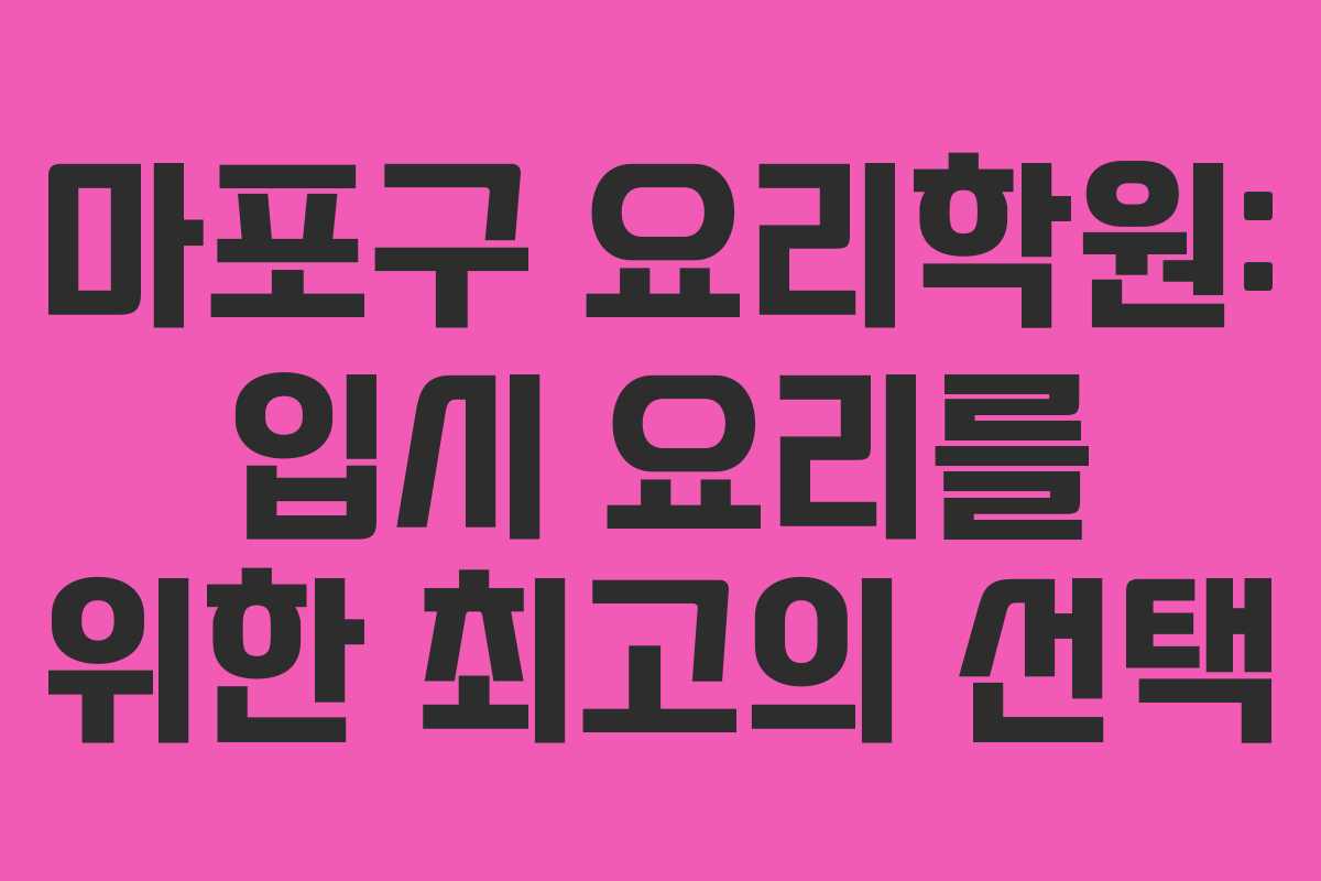 마포구 요리학원은 입시 요리 교육을 전문으로 하며, 맞춤형 컨설팅과 다양한 자격증 과정, 소수 정예 수업으로 학생들의 실력을 향상시킵니다.