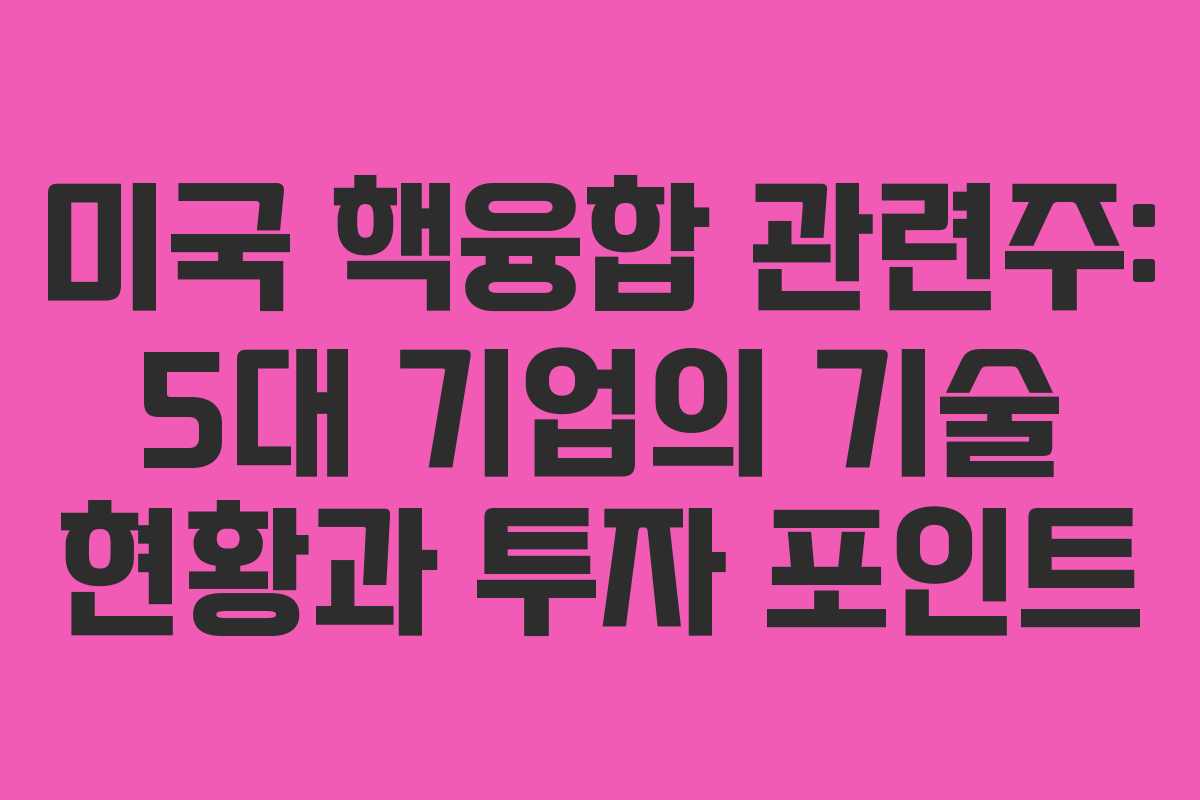 본 글은 미국 소재 핵융합 분야의 다섯 개 대표 종목의 기술 포커스와 현재 개발 상태를 바탕으로, 투자 시 점검 포인트와 리스크를 정리합니다. 각 기업의 차별점과 시장 파급 효과를 비교해보면 향후 가능성도 함께 가늠할 수 있습니다.