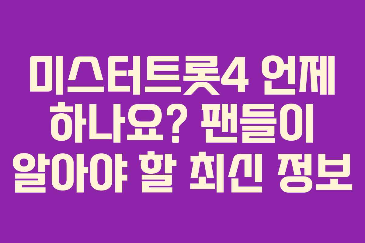 미스터트롯4 언제 하나요? 팬들이 알아야 할 최신 정보