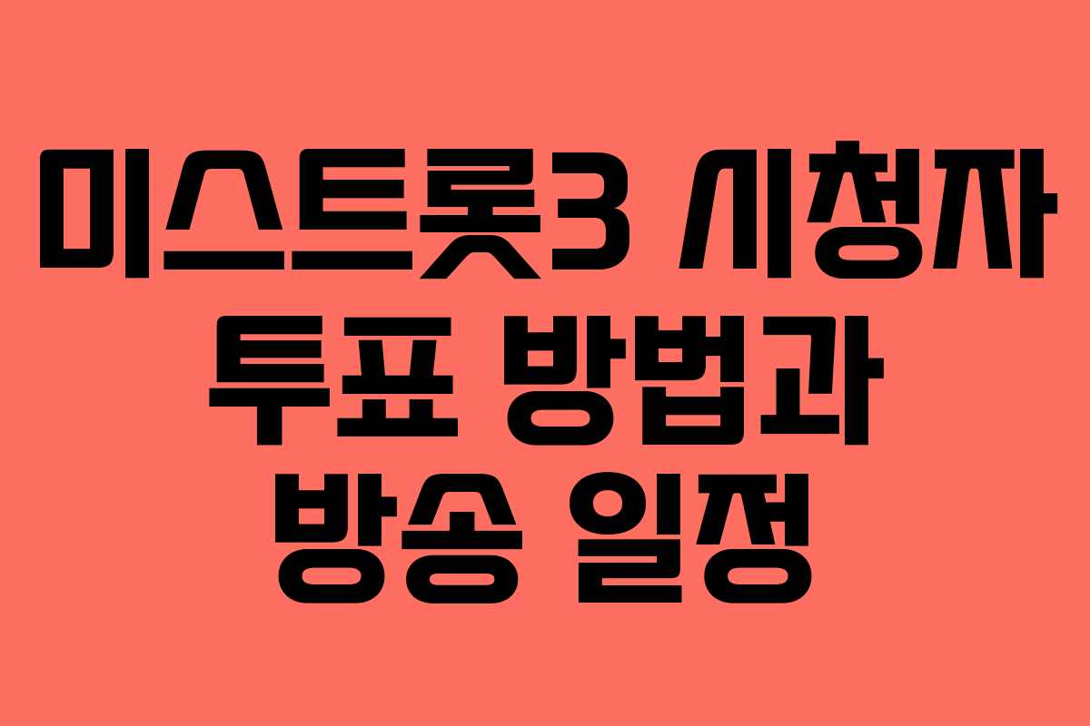 미스트롯3는 많은 기대를 받고 있는 프로그램으로, 시청자 투표를 통해 참가자의 순위가 결정됩니다. 이번 글에서는 미스트롯3의 투표 방법과 방송 일정에 대해 자세히 알아보겠습니다.