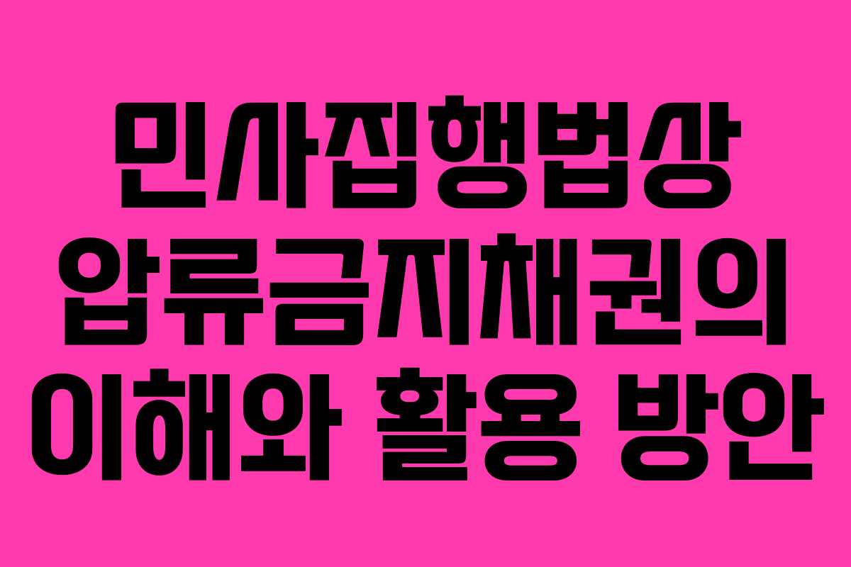 민사집행법에서는 압류금지채권에 대한 규정을 명시하여 채무자의 권리를 보호하고 있습니다. 이러한 채권은 채무자의 생계와 관련된 소득을 보호하기 위해 설계된 것으로, 특정 요건을 충족하는 경우에만 적용됩니다. 본문에서는 압류금지채권의 종류와 특성, 그리고 이를 활용하는 방법에 대해 살펴보겠습니다.