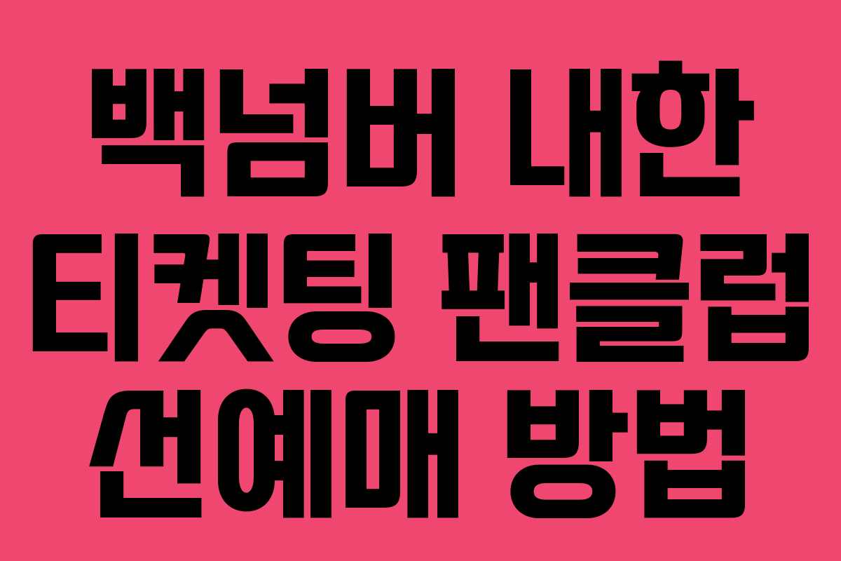 백넘버 내한 티켓팅 팬클럽 선예매 방법