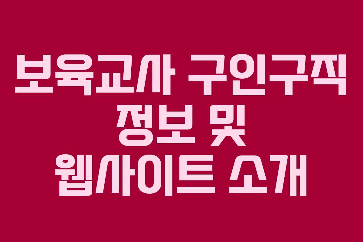답변: 중앙육아종합지원센터와 키드키즈, 꼬망세 등 다양한 웹사이트에서 보육교사 구직 정보를 확인할 수 있습니다.